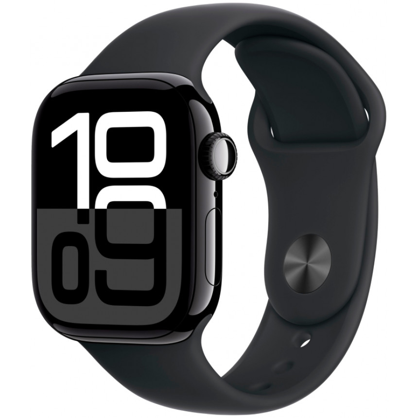 Часы Apple Watch Series 10, 42 мм, алюминий цвета «чёрный оникс», ремешок Sport Band чёрного цвета