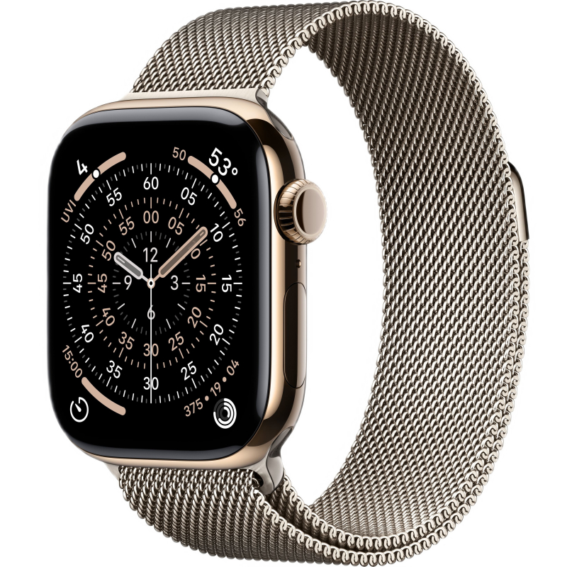 Часы Apple Watch Series 11, 42 мм, титан золотого цвета, миланский сетчатый браслет