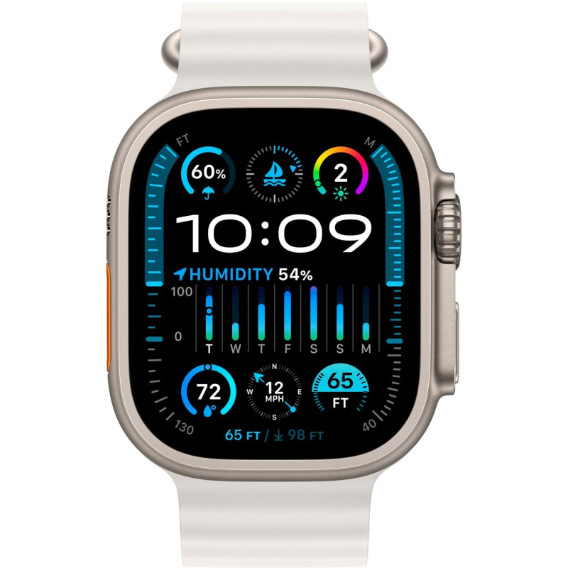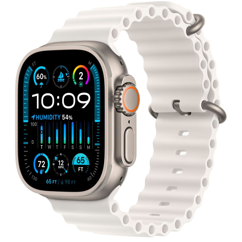 Часы Apple Watch Ultra 2, 2023, 49 мм, титан светлого цвета, ремешок Ocean белого цвета